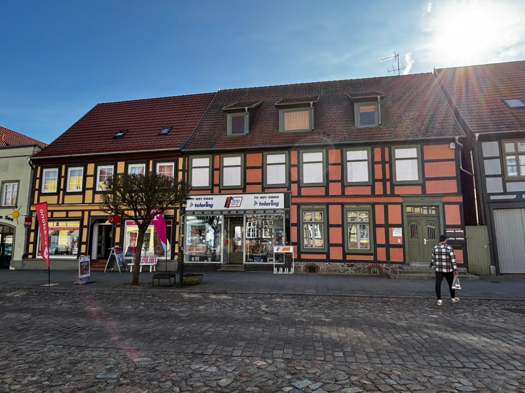 Es gab auch einen Wochenmarkt in Plau und Frauchen kaufte Obst und Gemüse und bekam von einem freundlichen Verkäufer noch Schokolade mit in die Tüte gepackt