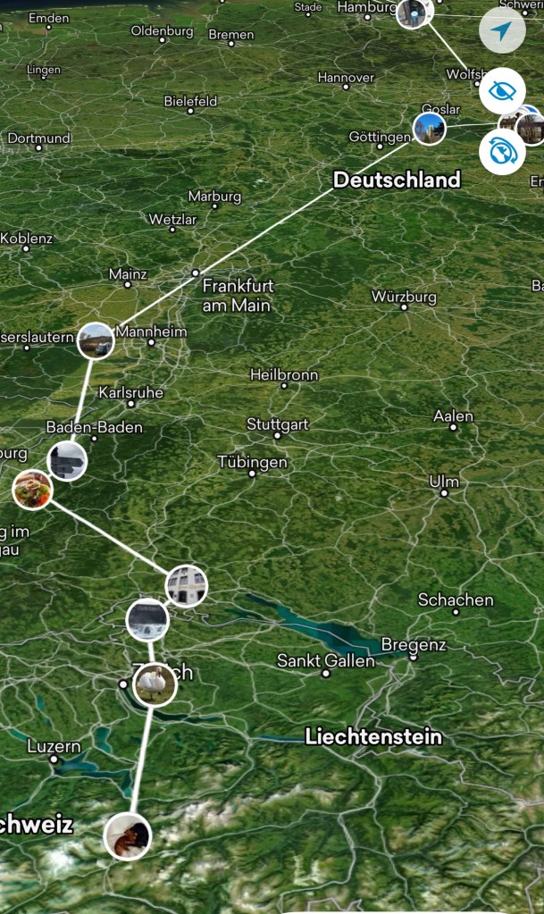 Bei bestem Wetter sind wir heute in die Schweiz gestartet. Auf allgemeinen Wunsch hier aber zunächst noch mal die Liste der Stellplätze mit Beginn der Tour in den Süden. Die Plätze davor und genauere Informationen bekommt ihr hier Stellplätze