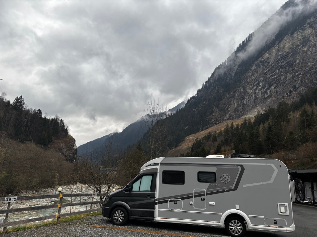 Kurz vor dem Gotthard Tunnel fand ich dann einen wirklich schönen Stellplatz. Das erste Mal, das ich seit Beginn meiner Reise was bezahlt habe fürs stehen. 15€ aber nur.