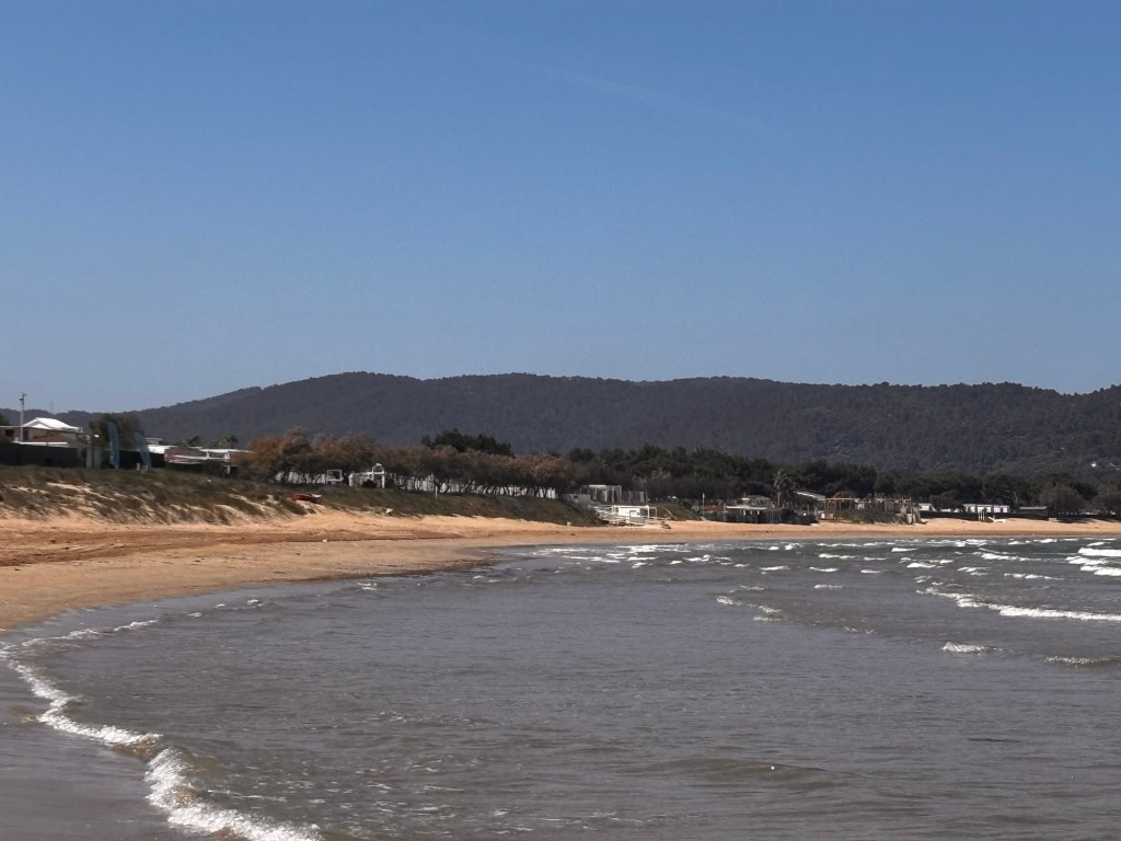 Paul und ich haben das Meer und den wunderschönen Strand ganz für uns alleine. Das Wasser ist mild, während Paul schwimmt, laufe ich mit den Füßen durch und es ist ok. Fast schon warm genug zum Schwimmen.