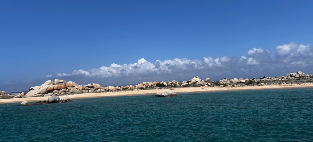 Man kann es gar nicht so fotografieren, wie es wirklich aussieht. Das Meer extrem blau, der Strand nahezu schneeweiß.