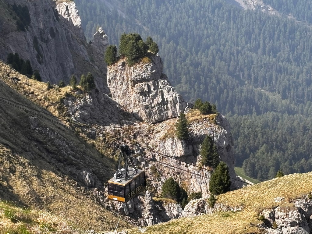 Die Seceda Bahn kam eher unspektakulär daher mit schlichter Aussicht