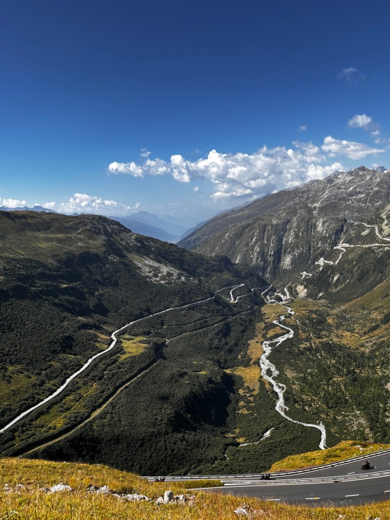 Nach den atemberaubend schönen Grimselpass lag es nahe, sich den Furka anzuschauen. Es ist unfassbar, das die sonst so teure Schweiz, hier ein völlig kostenloses Vergnügen bietet. Weder die Auffahrt noch das Parken kostet was. Dafür kostet eine Kugel Eis 7€ Euro und Pommes 12,50€ 😅😅