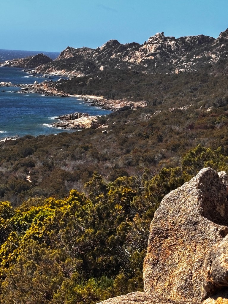 Aber ich bin ja auch nicht wegen dem Campingplatz hier, sondern wegen dem Wandergebiet. Und das ist schlichtweg atemberaubend! Ich hab heute eine absolut magische Runde durch das Gebirge hinter dem Campingplatz gemacht. Das war durchaus eine respektvolle Tour mit einiges an gekraxel, wurde aber belohnt mit sensationeller Aussicht und atemberaubenden Badebuchten.